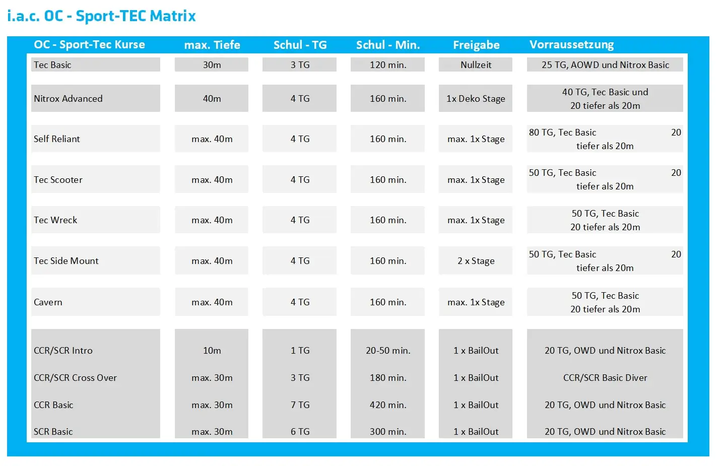 Kursübersicht i.a.c Sport Tec Tauchkurse
